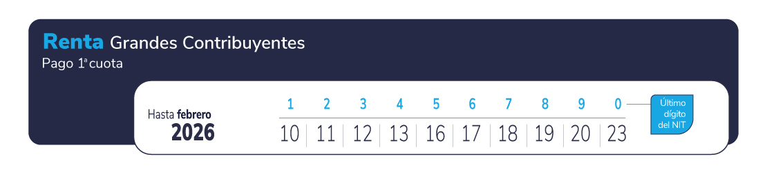 Entre el 10 y el 23 de febrero, los grandes contribuyentes deben pagar la primera cuota del impuesto sobre la renta y complementarios del año gravable 2025, así como del anticipo del año gravable 2026. El plazo depende del último dígito del NIT.
